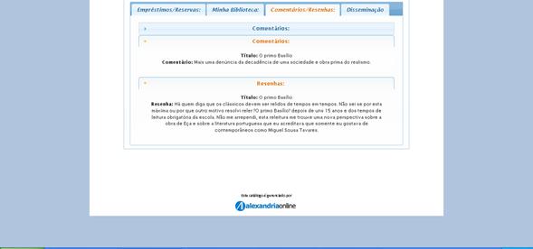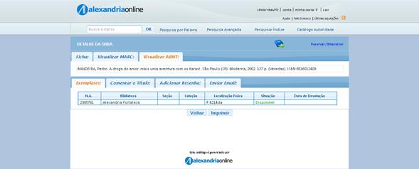 Neste área fica disponível o manual de utilização do OPAC do Alexandria On Line.