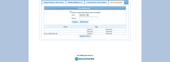 as novas aquisições da biblioteca conforme o seu perfil de interesse;